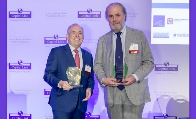 Η ελληνική ναυτιλία επιβεβαίωσε για μία ακόμη φορά την κυρίαρχη θέση της στο παγκόσμιο στερέωμα των θαλασσίων μεταφορών, με την απονομή του “2025 Capital Link Maritime Sustainability Award” σε δύο κορυφαίους εκπροσώπους του κλάδου. Το βραβείο απονεμήθηκε στον Paolo d’Amico, πρώην Πρόεδρο της INTERTANKO, και στον Δημήτριο Φαφαλιό, πρώην Πρόεδρο της INTERCARGO και Γραμματέα του Διοικητικού Συμβουλίου της Ένωσης Ελλήνων Εφοπλιστών, στο πλαίσιο του 15ου Ετήσιου Συνεδρίου της Capital Link για την Επιχειρησιακή Αριστεία στη Ναυτιλία.
