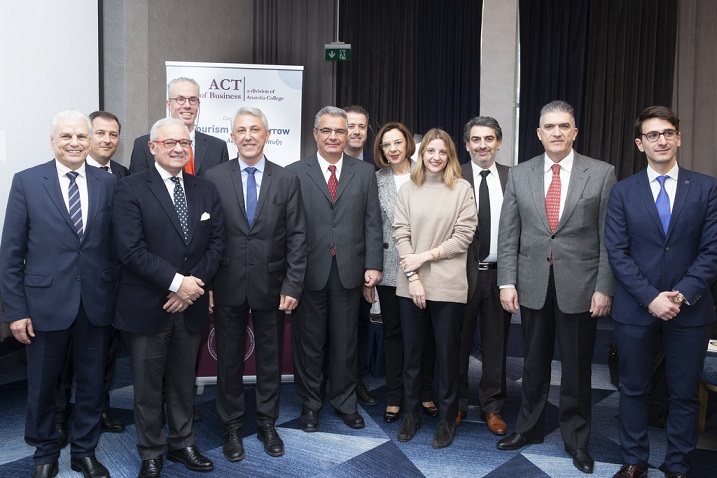 Από αριστερά: Γιώργος Ματσίγκος, Πρόεδρος Συλλόγου Διευθυντών Ξενοδοχείων Ρόδου, Σπύρος Κουρής, Operational Leader της Domes Hotels and Resorts, Hisham Zaazou, πρώην Υπουργός Τουρισμού Αιγύπτου, Ανέστης Αναστασίου, υπεύθυνος ακαδημαϊκών προγραμμάτων Τουρισμού και Φιλοξενίας στο ACT, Δρ Πάνος Βλάχος, Πρόεδρος Κολλεγίου Ανατόλια, Δρ Στάμος Καραμούζης, Πρύτανης του ACT, Γρηγόρης Τάσιος, Προέδρος της Πανελλήνιας Ομοσπονδίας Ξενοδόχων, Ελένη Σωτηρίου, Διευθύντρια του Thessaloniki Conventions Bureau, Kατερίνα Σαντίκου, ιδρύτρια και managing director της Workathlon, Δρ Νίκος Χουρβουλιάδης, Διευθυντής του Business School του ACT, Γιώργος Δρακόπουλος, ιδρυτής και CEO της Tourism Generis, Στέφανος Παπανίκος, Strategy, Analytics and M&A Manager της Deloitte.