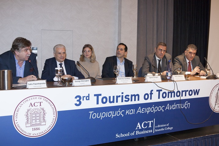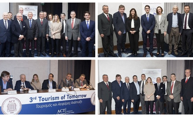 Η αειφορία και η βιώσιμη ανάπτυξη των τουριστικών επιχειρήσεων ήταν το θέμα της Ημερίδας “Tourism of Tomorrow” που διοργάνωσε για τρίτη συνεχόμενη το ακαδημαϊκό πρόγραμμα Τουρισμού και Φιλοξενίας του ACT – American College of Thessaloniki. Η ημερίδα πραγματοποιήθηκε την Παρασκευή 17 Ιανουαρίου 2020 στο ξενοδοχείο Makedonia Palace με τη συμμετοχή εκπροσώπων φορέων, μεγάλων τουριστικών επιχειρήσεων και συμβουλευτικών εταιριών.