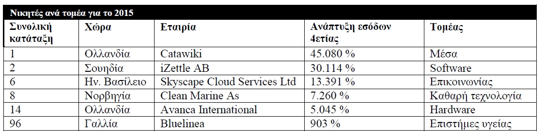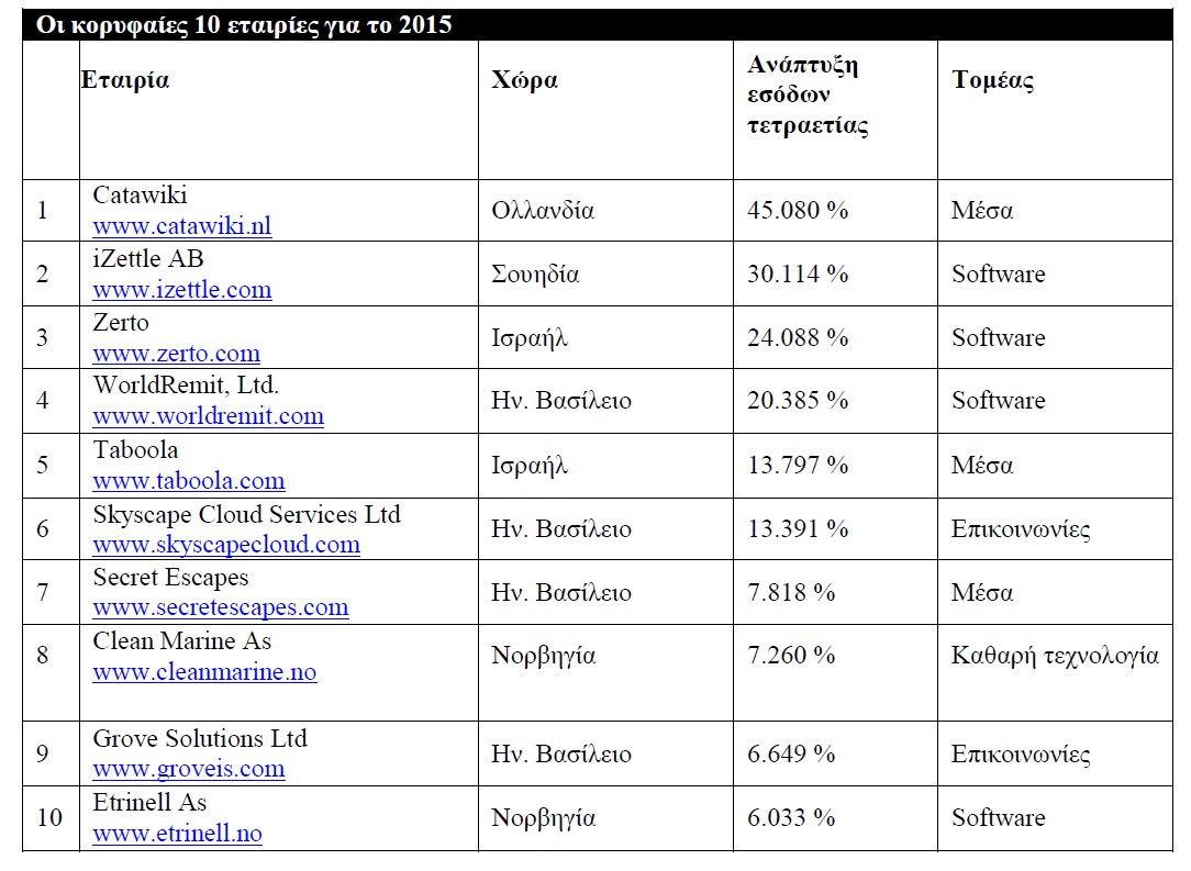 Η Deloitte ανακοινώνει την κατάταξη 2015 Technology Fast 500TM στις περιοχές Ευρώπη, Μέση Ανατολή και Αφρική (ΕΜΕΑ)