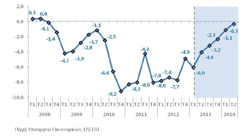 Το ΑΕΠ εκτιμάται ότι θα αυξηθεί κατά 0,6%, από -3,9% το 2013.