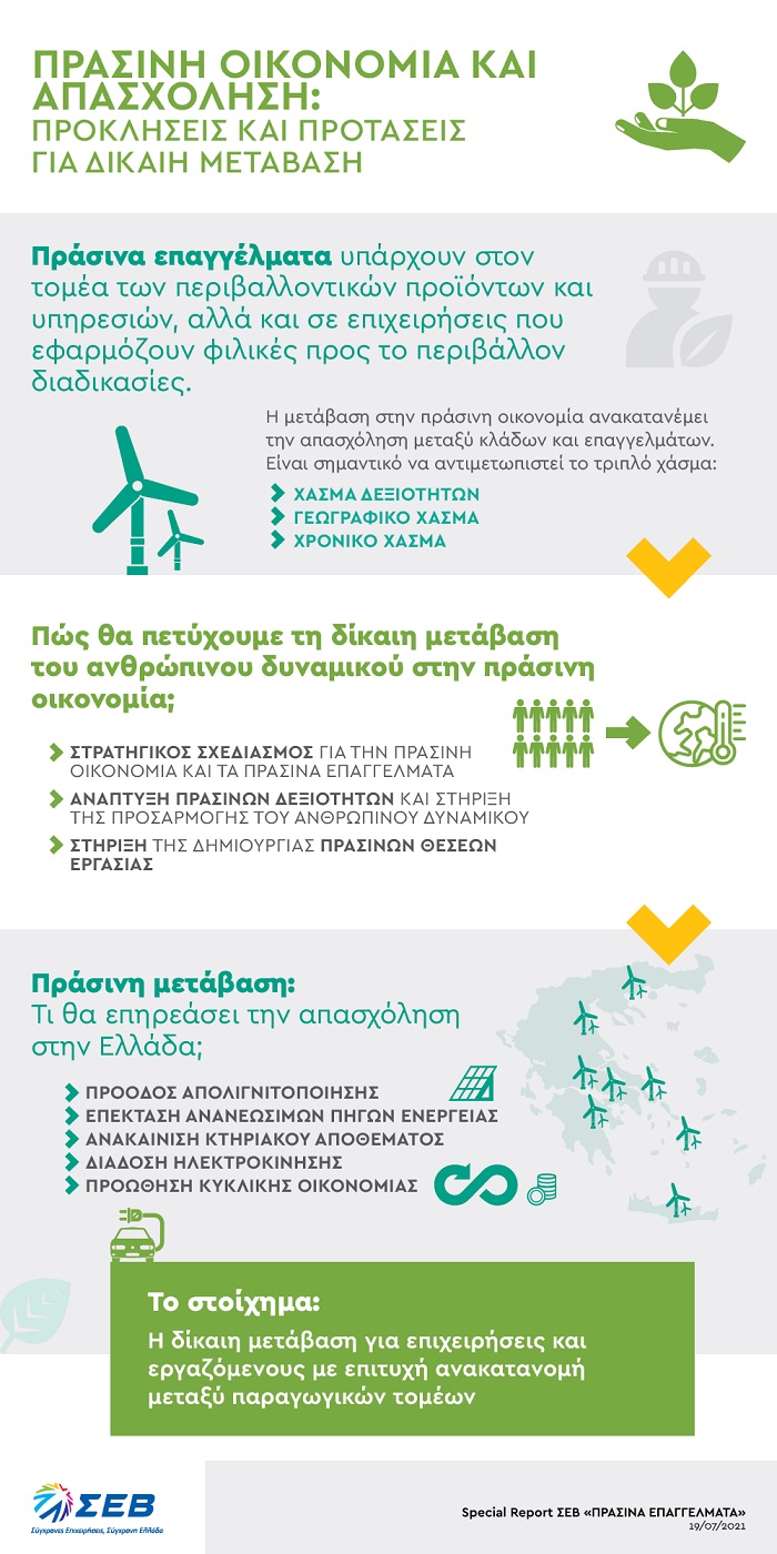 -Ο ΣΕΒ καταθέτει δέσμη προτάσεων για τη δίκαιη μετάβαση των εργαζομένων στην πράσινη οικονομία.