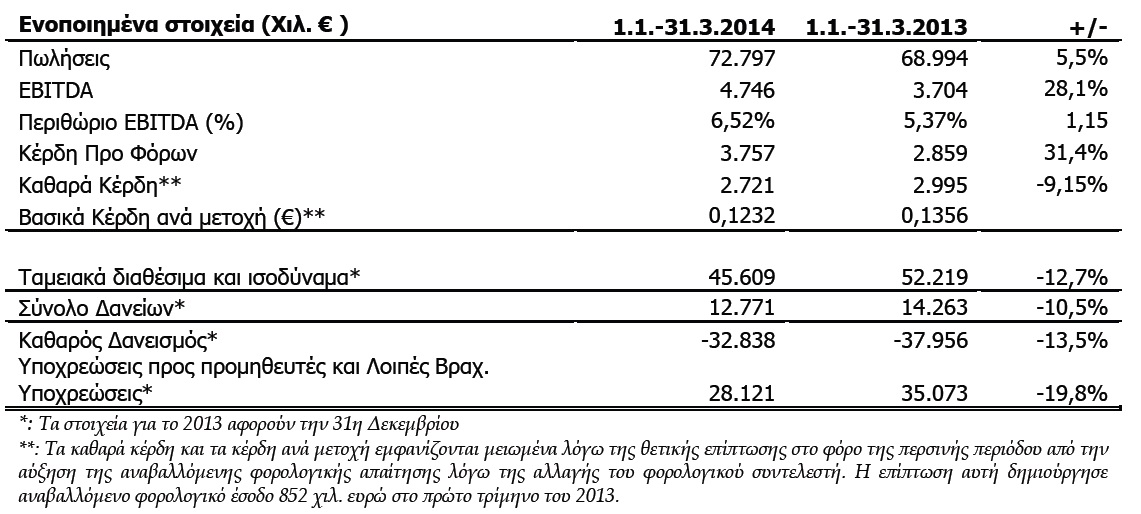 -Κέρδη προ φόρων € 3,8 εκατ., σημαντικά υψηλότερα κατά 31,4%