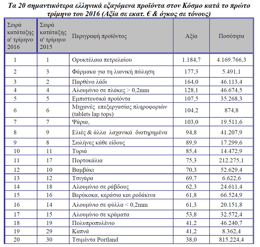 ΠΣΕ: Τα πιο εξαγώγιμα ελληνικά προϊόντα και οι κορυφαίες αγορές στο α΄3μηνο 2016 -Αντιστέκονται στις πιέσεις τα ελληνικά αγροτικά προϊόντα