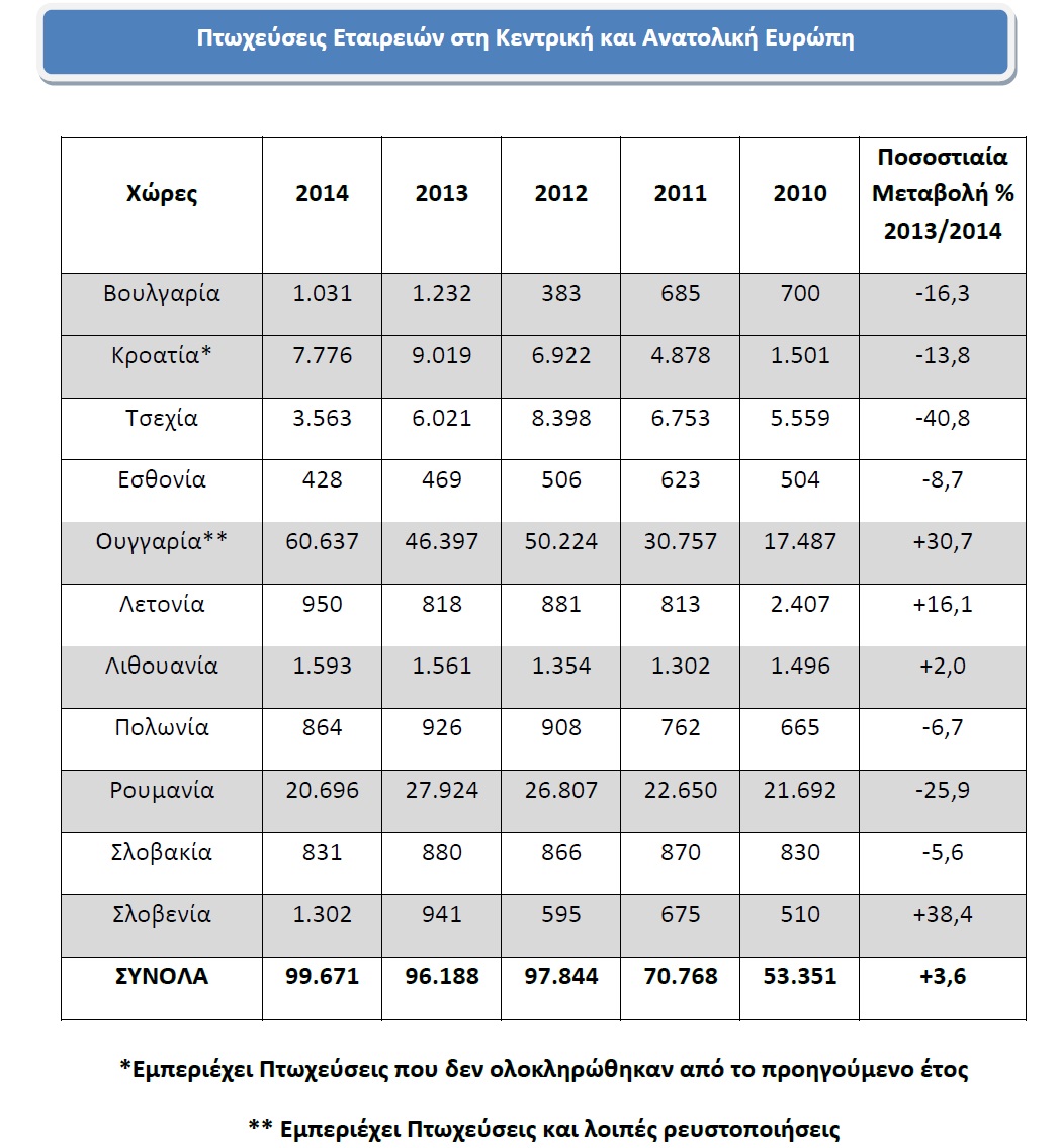 5.Πτωχεύσεις εταιρειών στην Κεντρική και Ανατολική Ευρώπη